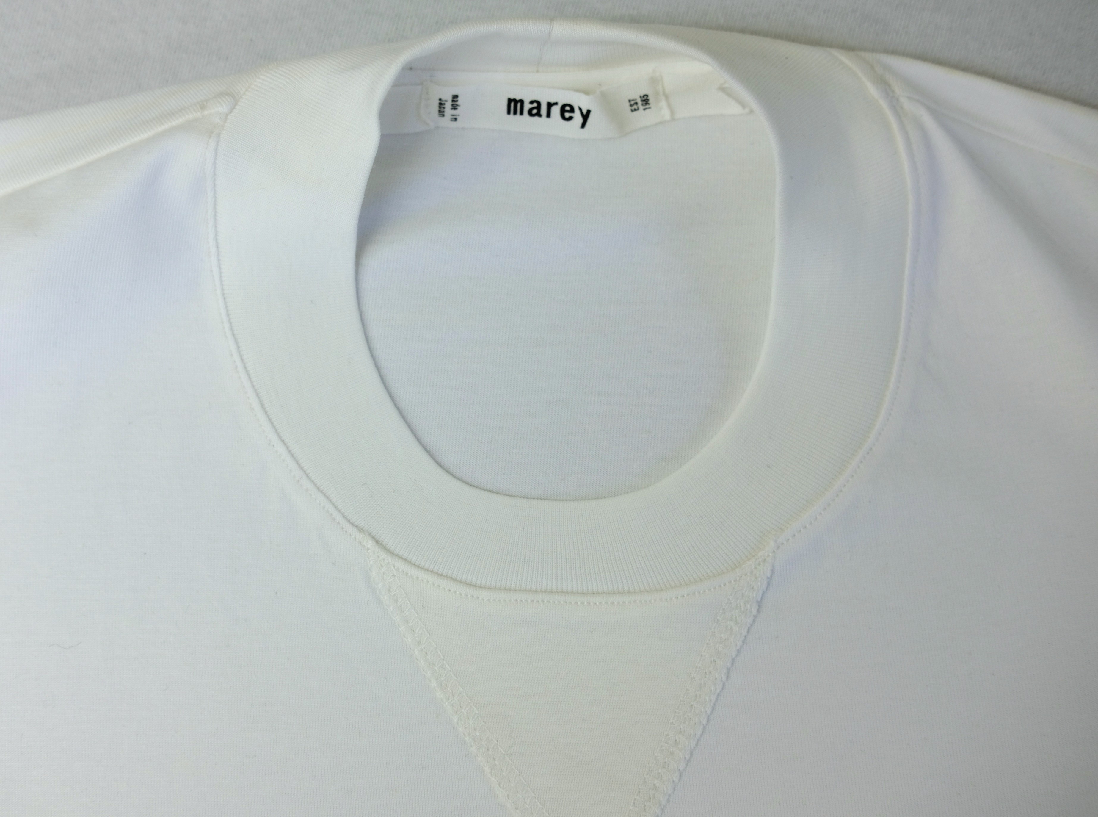 丸衿Tシャツ 40/2コーマ長綿天竺風合いが良し マレイの特許パターン、ジャケットの衿を汚さない立ち襟Tシャツ、ポケットは紳士服の中縫いポケットと脇スリット 特許パターンTシャツ衿が立つのでジャケットの衿を汚さない、Tシャツとしては少ないデザイン衿下ガゼッ縫い |