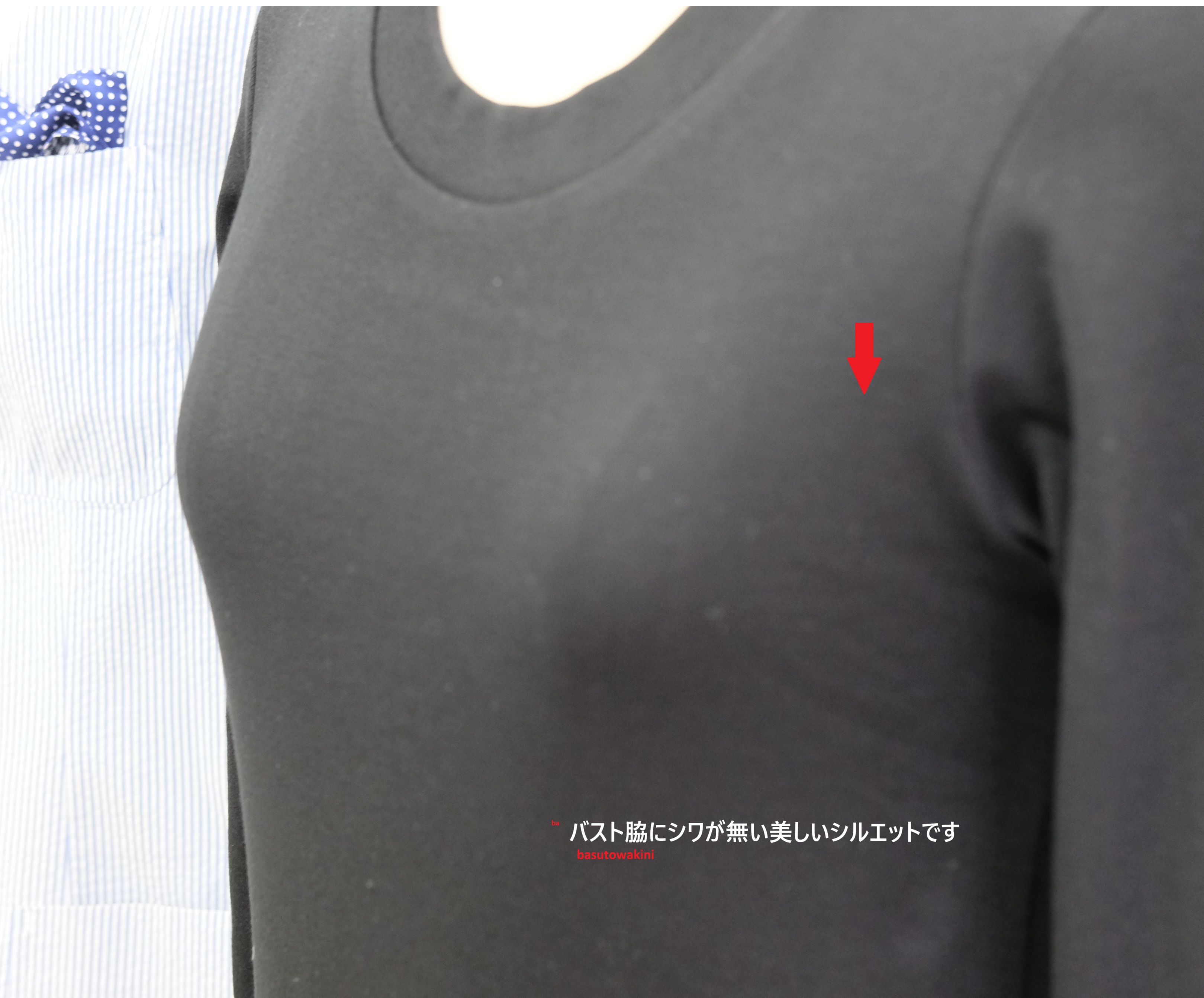 美しいバストシルエットを表現します ![]() バストダーツシワの無いのがマレイ特許のパターン ![]() |